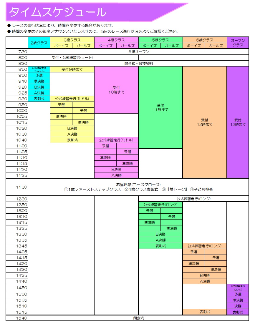 当日のレース状況ならびにアナウンスをよくご確認ください。